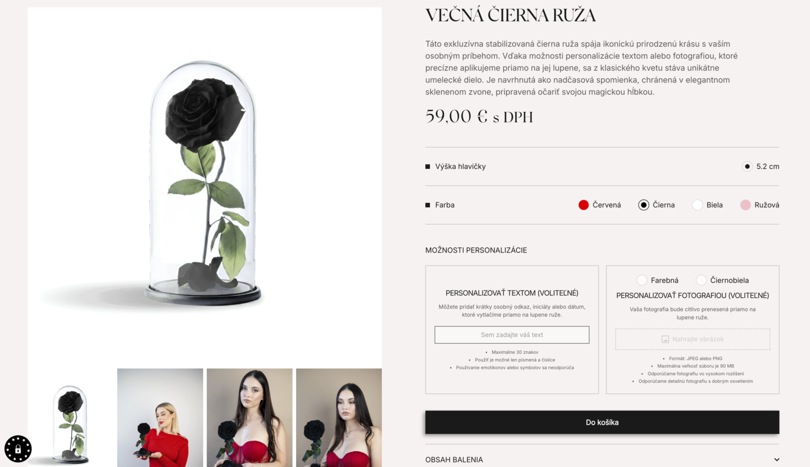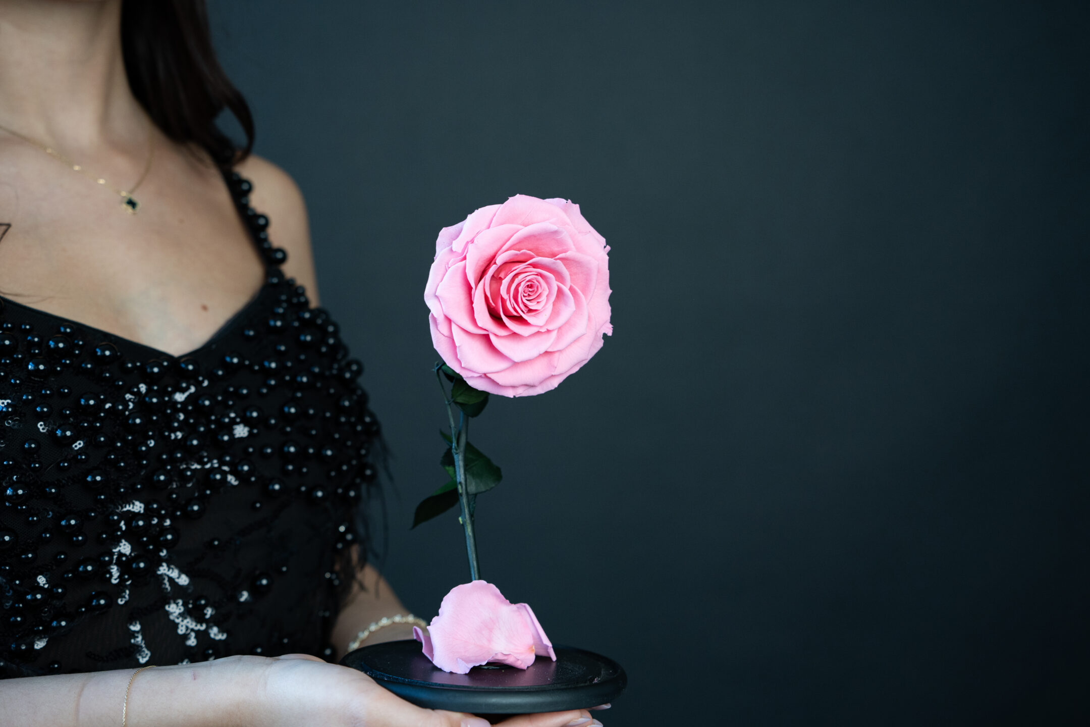 Forgó rózsa üvegbúra alatt, amely a márka ikonikus elemévé vált.
