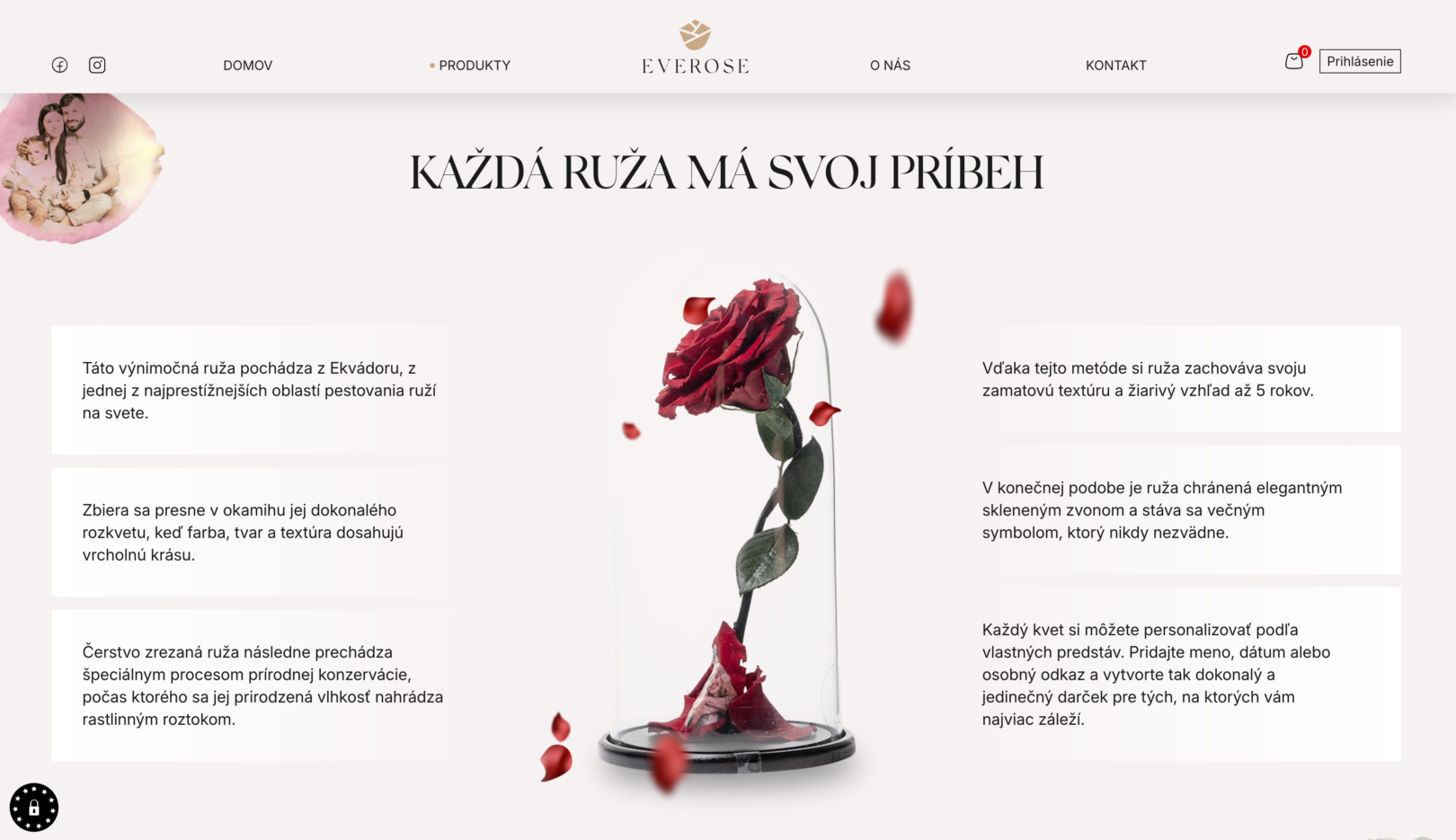 A koncepció középpontjában a tartós rózsa áll, amely nem csupán dekoráció, hanem egy személyes történetet hordozó ajándék. A projekt kezdetétől részt vettünk a márka digitális identitásának kialakításában, azzal a céllal, hogy egy olyan online felület jöjjön létre, amely nemcsak informál, hanem azonnal bevonja a látogatót a prémium élménybe.